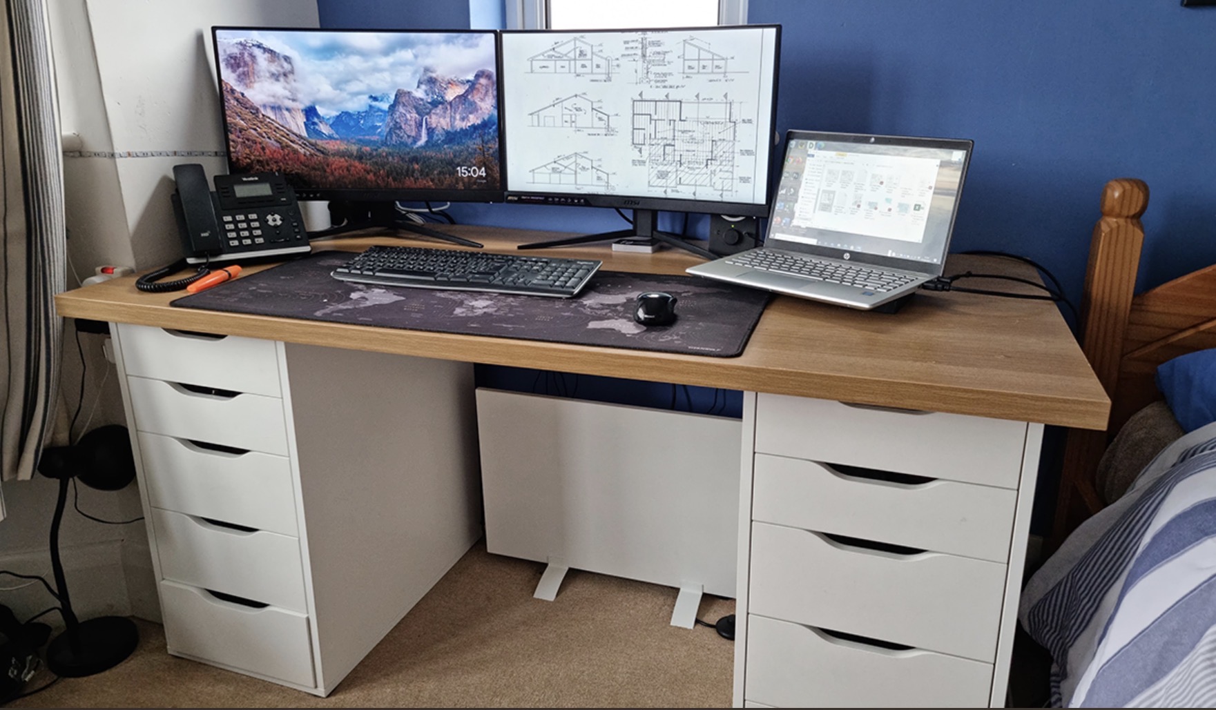 Radiateur individuel compact conçu pour chauffer les jambes et les pieds au bureau.