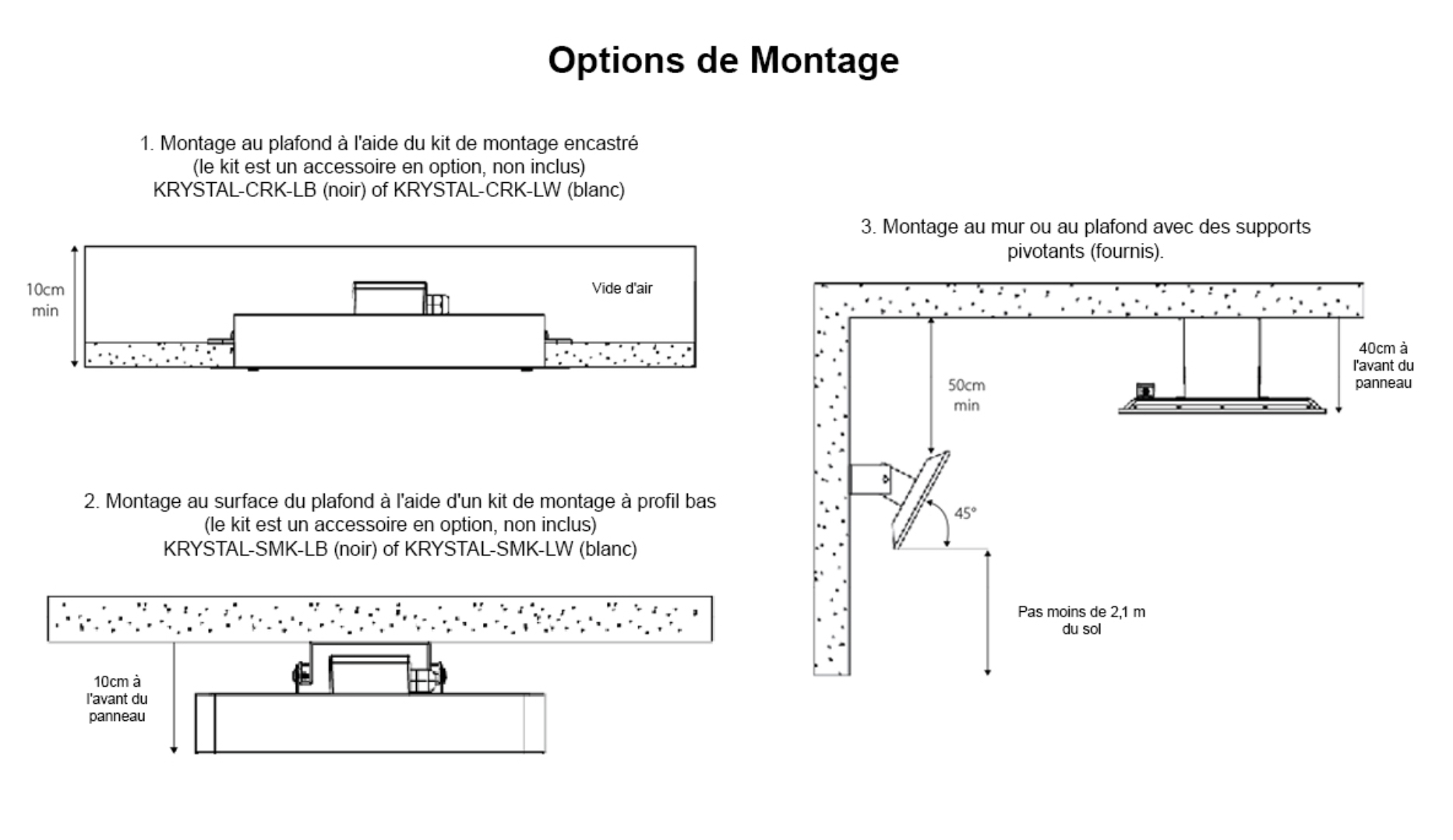 - Installation: Montage au mur ou au plafond