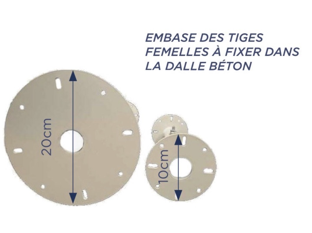 L’embase des tiges est de 20 cm de diamètre pour les tiges de 40-60 cm, 60-90 cm et 90-110 cm.